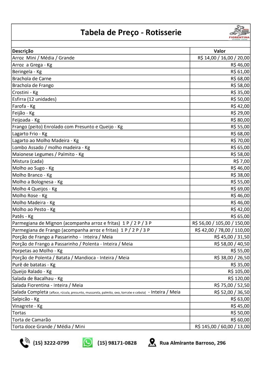 Welcome to Fiorentina Rotisserie e Cantina, an Italian gem tucked away in Vila Independencia, Sorocaba. Here, the menu beautifully marries traditional Italian culinary artistry with a warm, inviting atmosphere. The self-service format allows guests to explore a delightful array of freshly prepared dishes, from succulent rotisserie meats to abundant sides and salads.